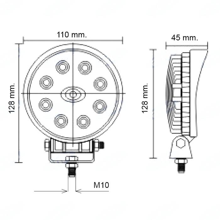 10-30V, 24W (8 LED X 3W), IP67, kovový obal s rebrovaním slúžiace zároveň ako chladič