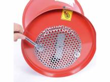 Akonáhle bude surovina zošrotovaná podľa zvoleného sita na požadovanú hrubosť, prepadne do zásobníkového barelu, ktorý má objem 20l. Po ukončovaní šrotovania je možné barel uzavrieť vekom s poistným zámkom av tomto bareli suroviny uchovávať po dobu potreby.