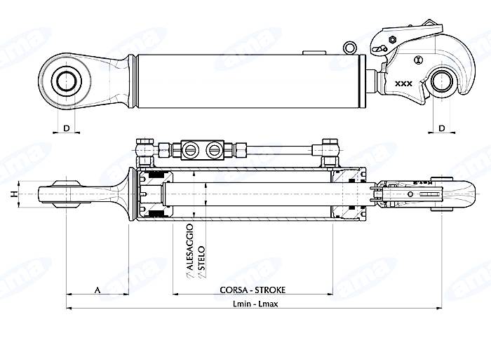 Obrázek k výrobku 57103 - Hydraulický třetí bod, 2. kategorie, délka 540/715, OKO/HÁK