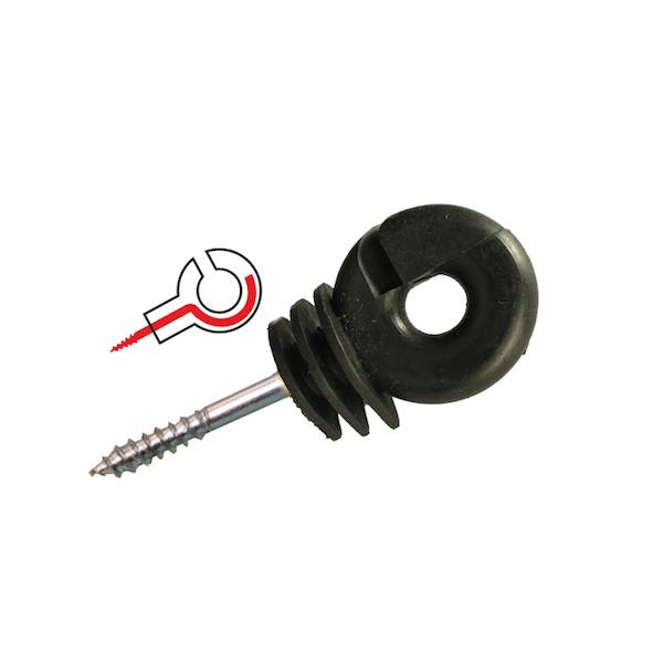 Štandardné priebežný kruhový izolátor osadený skrutkou Ø 5mm. Univerzálny izolátor na drevené koly pre drôty, vodivá lanka do Ø 5mm a vodivou pásku šírky 10mm.