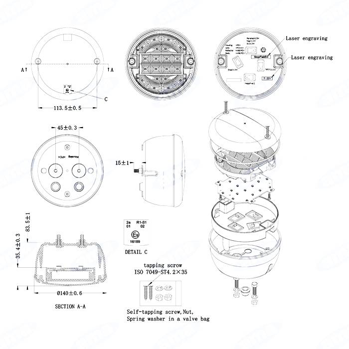 Koncové diódové svetlo okrúhle. Pripojovacie napätie 9-33V.Pracovní teplota -40 ° C / 65 ° C.Krytí IP 67. Použitie ľavej / pravé.Průměr svetla 135mm.