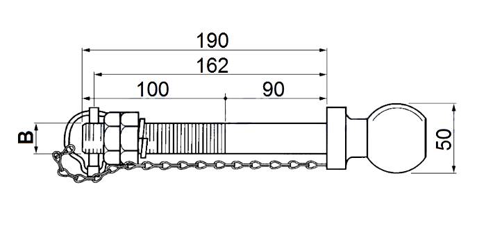 A-50 mm, B-25mm, závit 1 ", C-90 mm, D-162mm, E-100 mm, L-190 mm