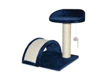 Vkusný mačací strom 3v1 s dvoma lôžkami, mostom, skrýšou, pevným sisalovým stĺpikom a plyšovou hračkou, s rozmermi 44x36x36 cm. Škrabadlo je vo veľmi zaujímavom atypickom prevedení v trendy lesklej modrej farbe. Dômyselne bolo navrhnuté tak, aby uspokojilo všetky náročné mačky aj ich majiteľov. Tento mačací príbytok poslúži ako odpočívadlo pre mačky, hrací kútik a tiež krásne miesto, kde môže mačka z výšky pozorovať okolie. Škrabadlo je samozrejme tiež výborné na toľko potrebné a pravidelné obrusovanie pazúrika. V neposlednom rade slúži celá konštrukcia ako hrací prvok.