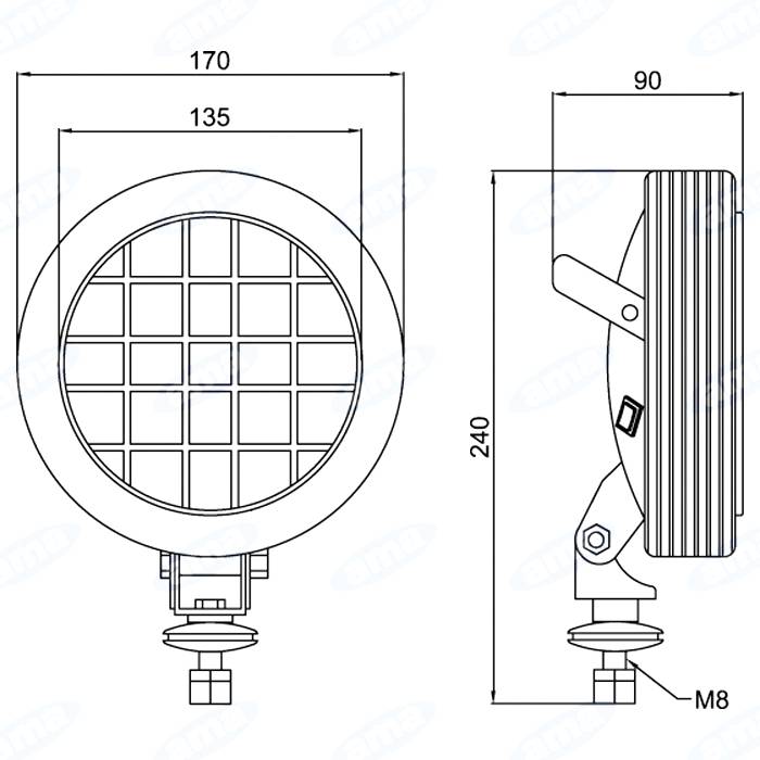 Obrázek k výrobku 19895 - Kulaté halogenové pracovní světlo 170 mm