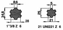 Vnitřní profil 21 x 25 x 5 mm 21 UNI 221 Z6 (6 zubů, 25 mm)