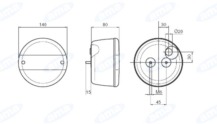 Svetlo zadnou guľaté 140 mm - pravé